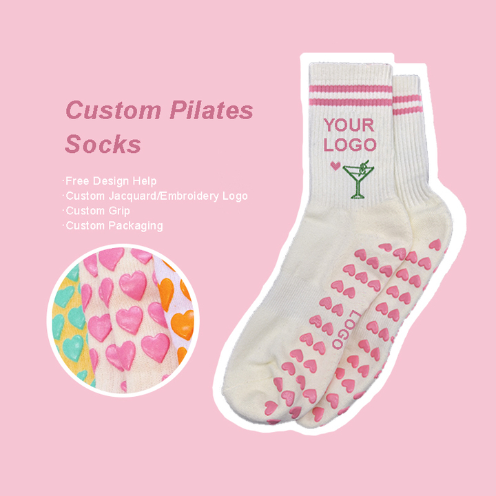 100% コットンピラティスグリップソックスプロ滑り止めクルーヨガソックスカスタムロゴスポーツスタイル女性用ピラティスソックス